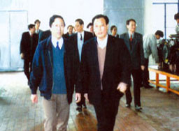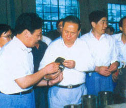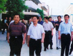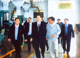 | 梁省長(前左一)在董事長陪同下視察企業 | 原副省長俞興德到生產車間視察工作 |